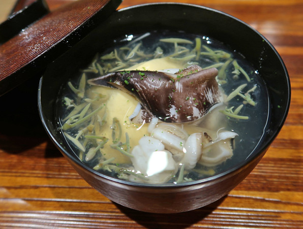 ●お椀はとり貝、秋田のじゅんさい、玉子豆腐。しみじみおいし。