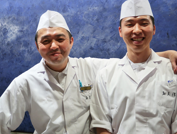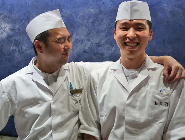 ●木山さんの後、こちらの料理長をつとめられる小川大輔さん(左)と、先日まで「室町和久傳」にいらした上杉謙信・・・ではない、長野(ちょうの)謙信さん。元自衛隊で、クラブエリーのマダムたちにも大人気だった謙信さんです。