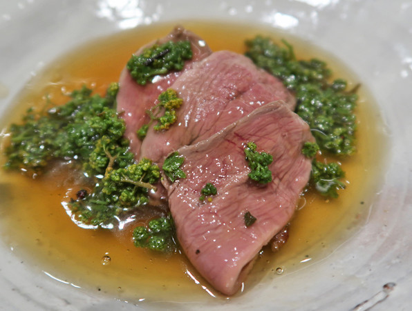 とりわけ、お椀(とり貝、じゅんさい、玉子豆腐)と、賀茂茄子と京鴨に花山椒をのせた炊き合わせに心を奪われました。