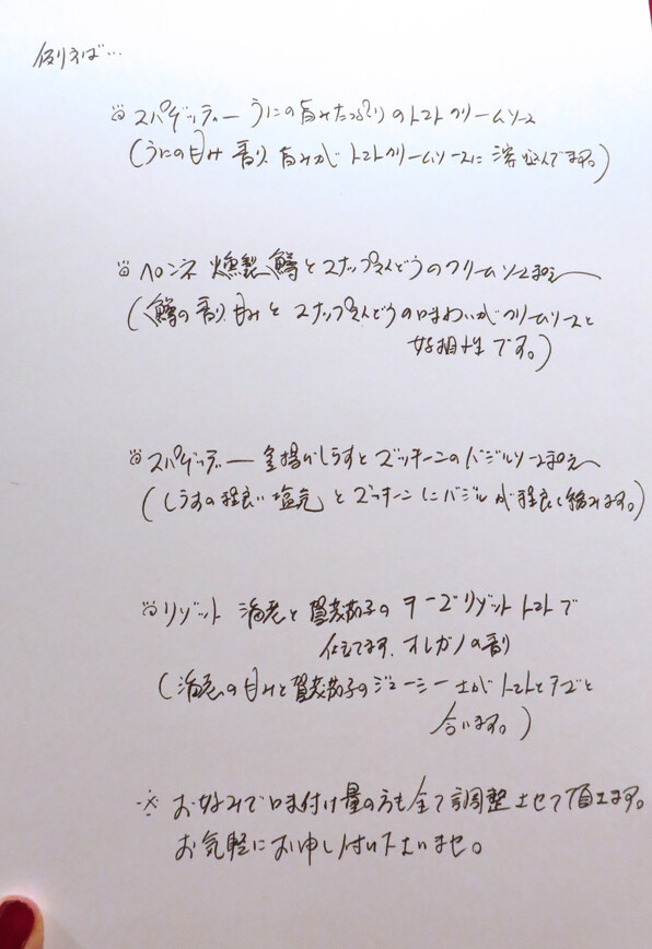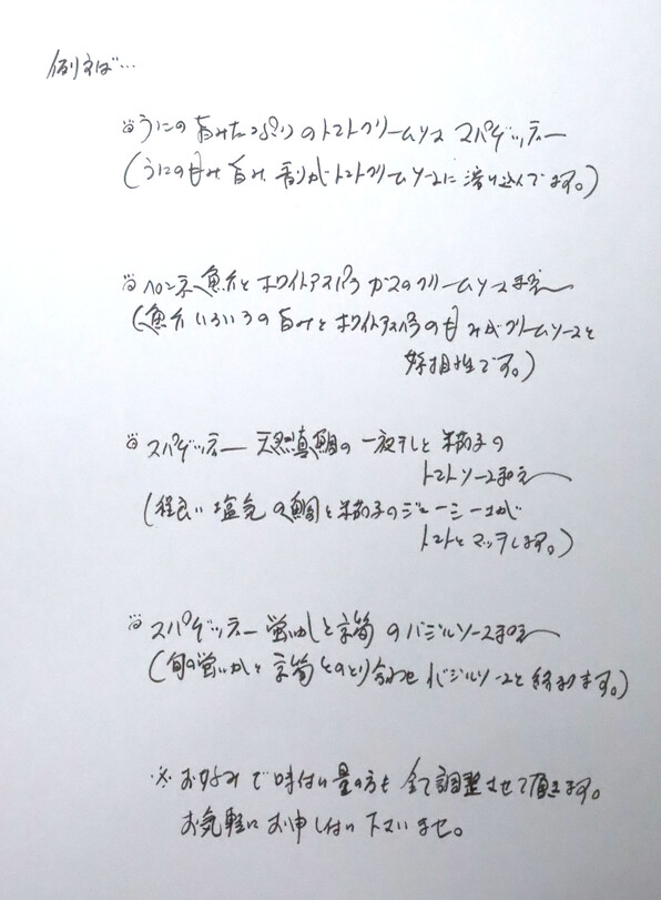 ●スパゲッティ 雲丹の旨みたっぷりのトマトクリームソース和え
