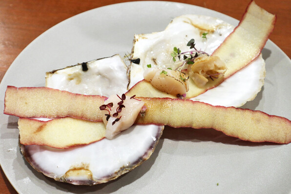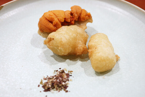 ●さらにそこに、後から揚げたてをのせられた帆立の燻製のフリット 旨すぎどうなのよ(*_*)(*_*)