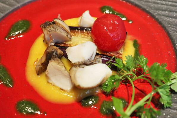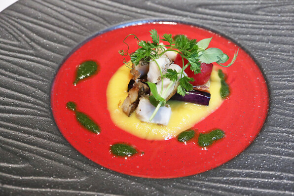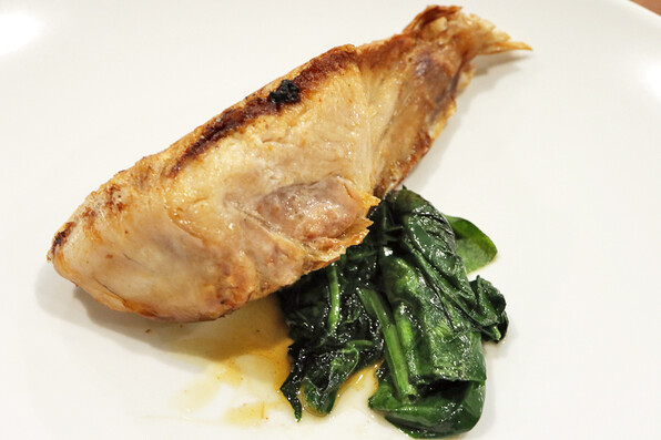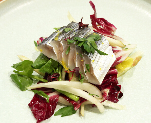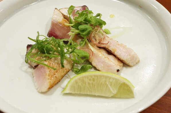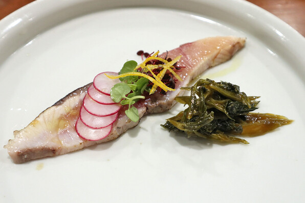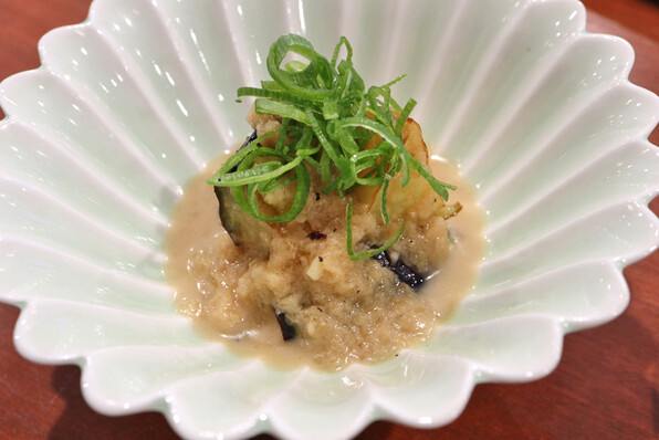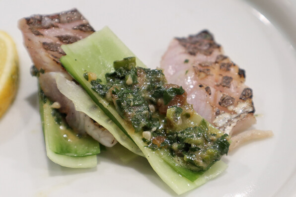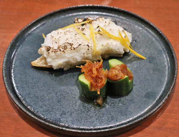 ●太刀魚の炙り、きゅうり、金山寺味噌と春菊
