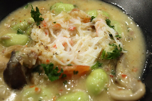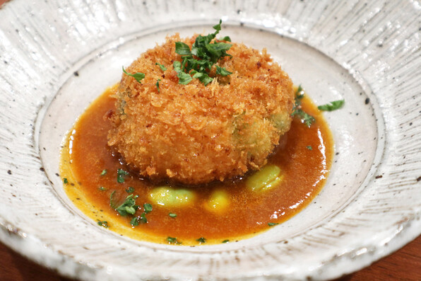 ●こっぺ蟹まる1杯分を甲羅にみっちり詰めた、こっぺ蟹クリームコロッケ、