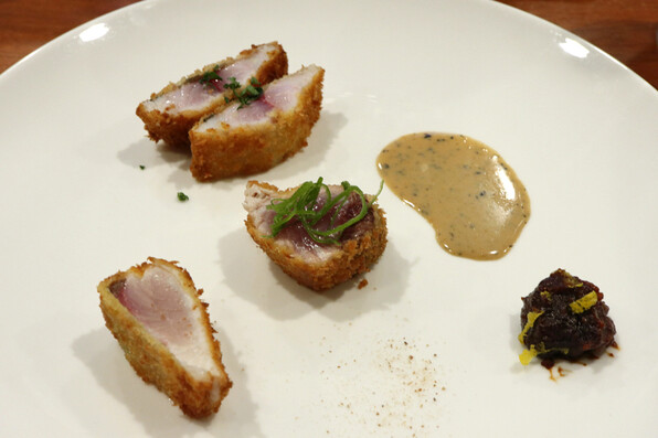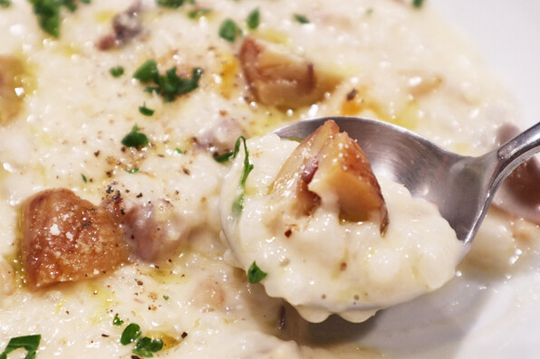 ●紫ずきんと蟹のクリームコロッケと、丹波くりのリゾット、これを見て食べたいと思わずにいられただろうか?(いいやいられはしなかった。)