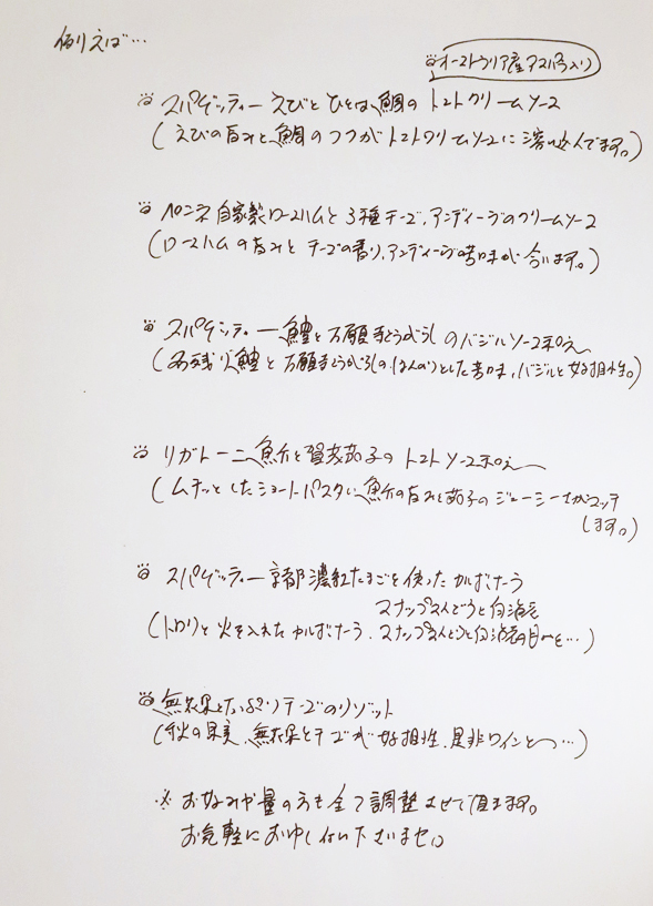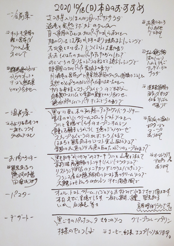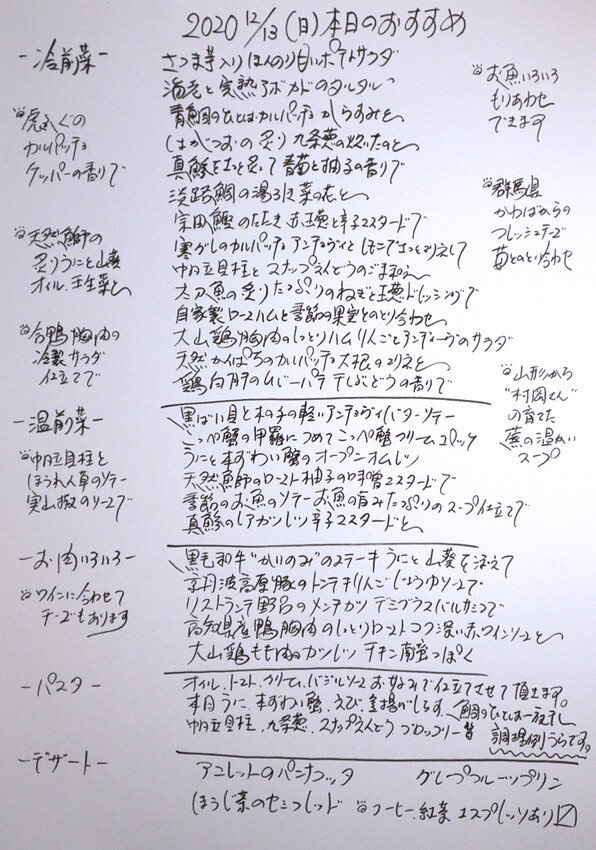 いつもの日曜夜の「リストランテ 野呂」