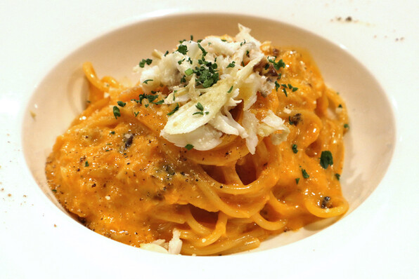 ●こっぺ蟹と雲丹山盛りのオープンオムレツ、