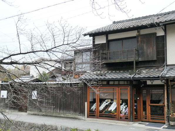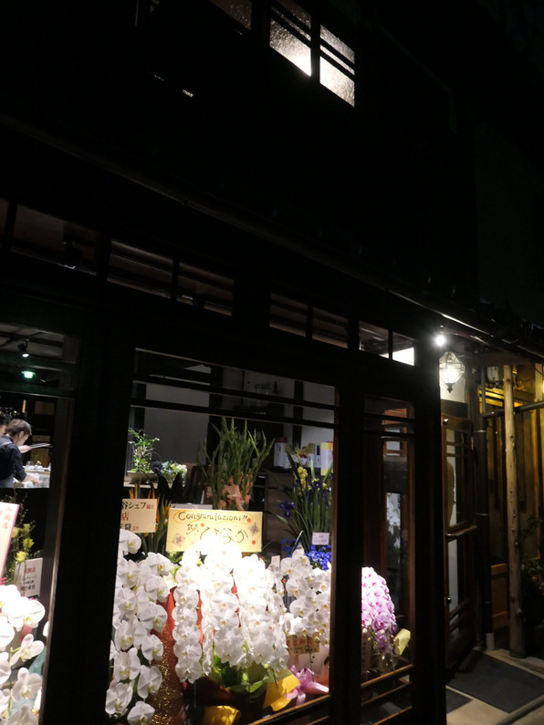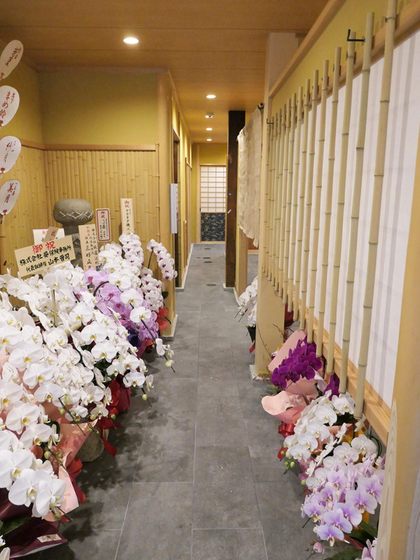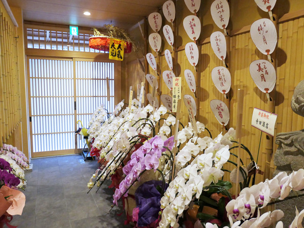 ●西花見小路にお祝いの花がたくさん飾られたこのお店・・・