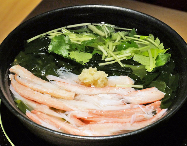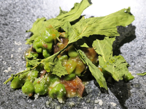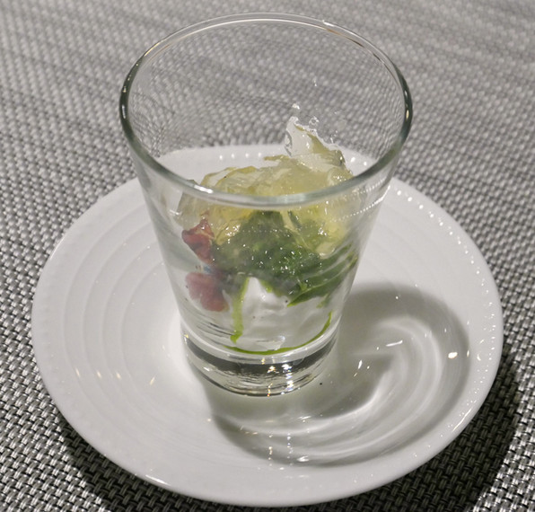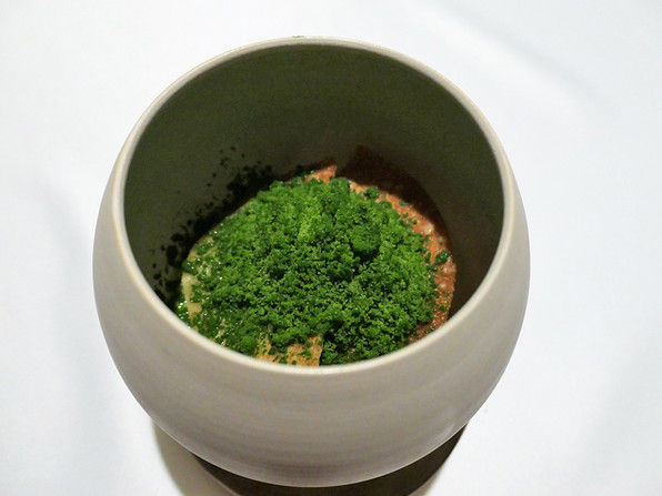 10)こっぺ蟹、春菊のジュレ、小鰯の魚醤、ケールパウダー。