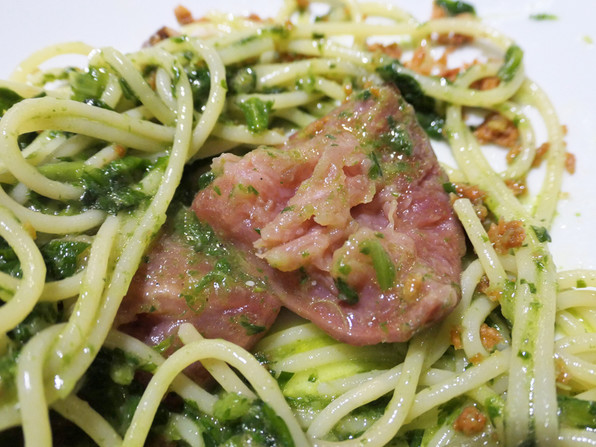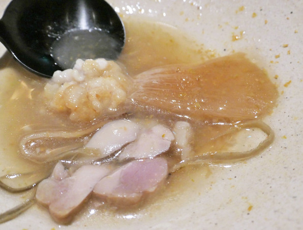 21)タリオリーニのラーメン風。スープは鶏と野菜のだし。お箸で。