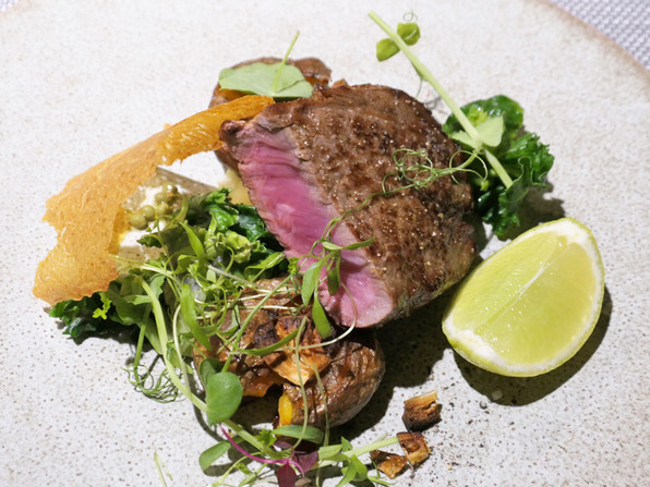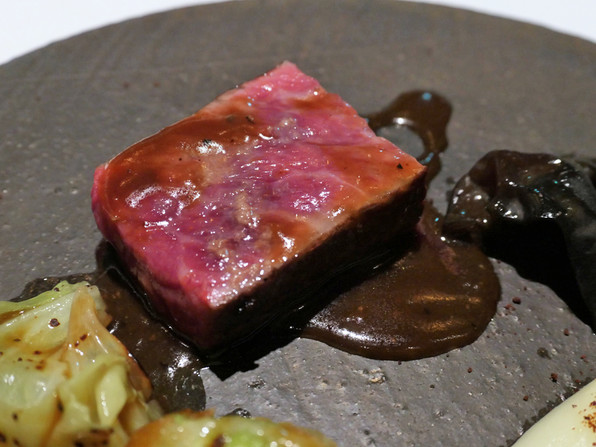 18)和牛経産牛(北海道)を1か月熟成させたもの。黒にんにくピュレと、フォンと。
