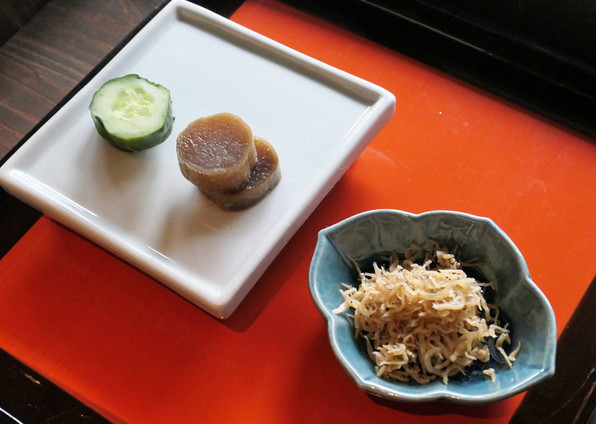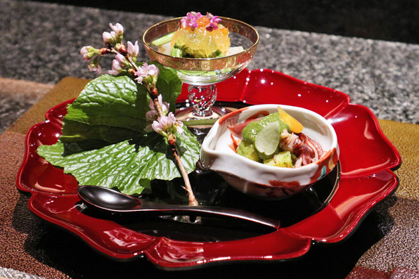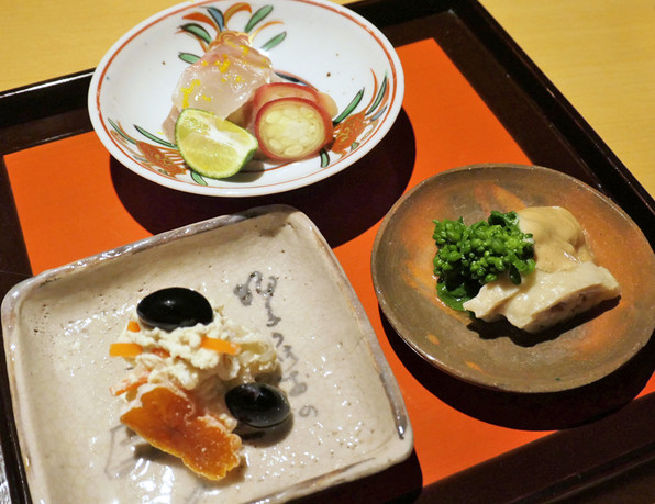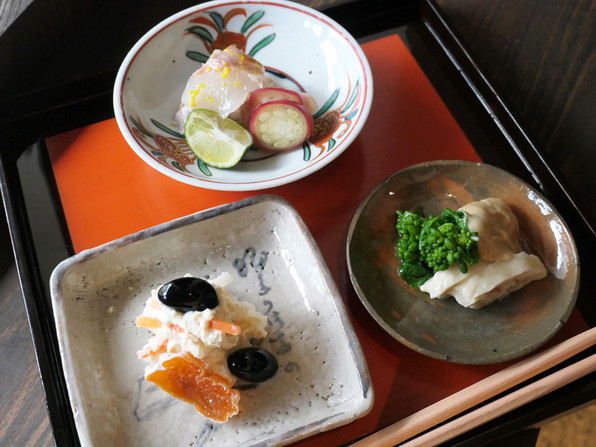●美しい先付のひと皿がまず供されました。