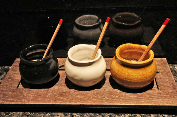 ●塩は3種類、黒七味、越前塩、藻塩。