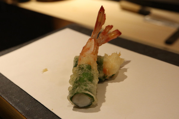 ●最後に、車海老の大葉巻き。これで天ぷら終わり。