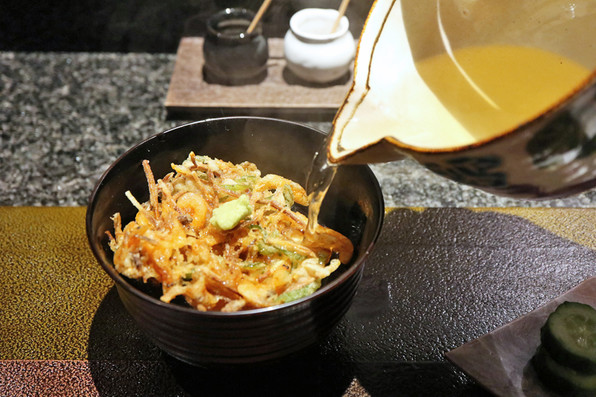 ●ご飯ものは選択で、これは天茶です。お茶ではなくおだしをかけてくださいます。
