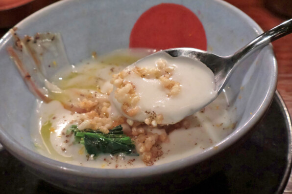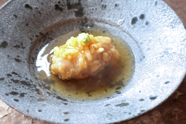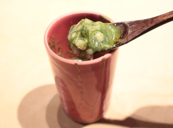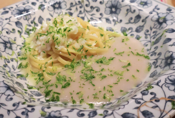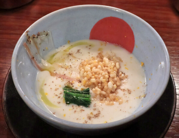 とろめん、以前にとうもろこし(2024年6月)と白アスパラガス(2025年7月)で出してくださっていますが、今回はピュレ状の百合根に卵白を合わせて蒸されたということ。
