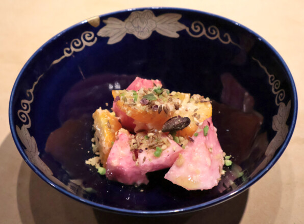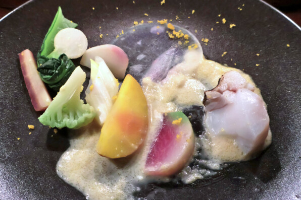組み合わせの妙と、柑橘の素敵な使い方に感じ入ったひと皿でした。