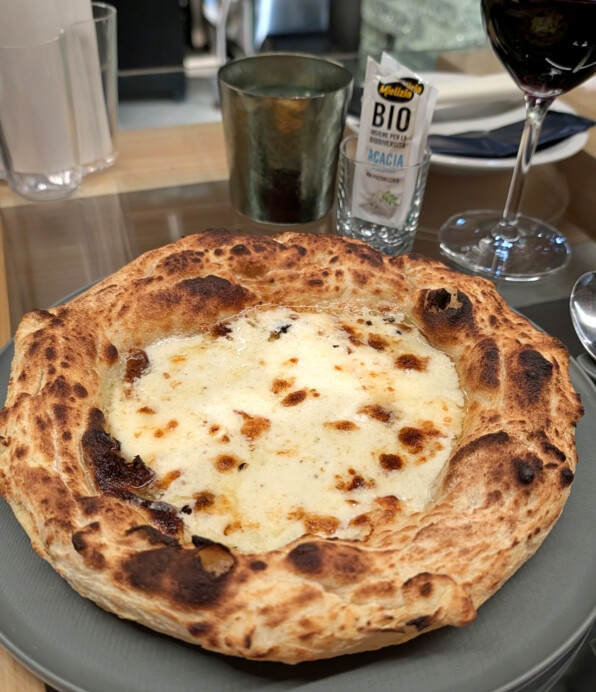 ●フォカッチャをテーブルでデクパージュしてくださるところ。