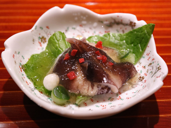 ●もうひと皿、大好きなとり貝で大喜びです。ジュレ状の煎り酒がとり貝に合わされ風味を添えていました。