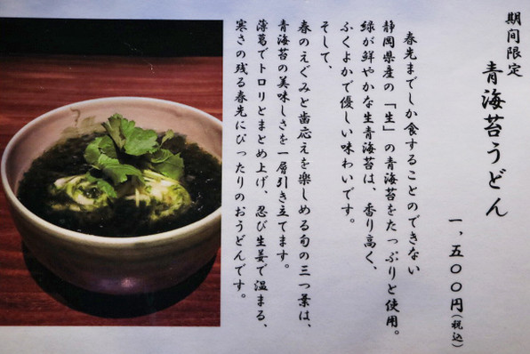 「仁王門 うね乃」さんの期間限定・青海苔うどん。