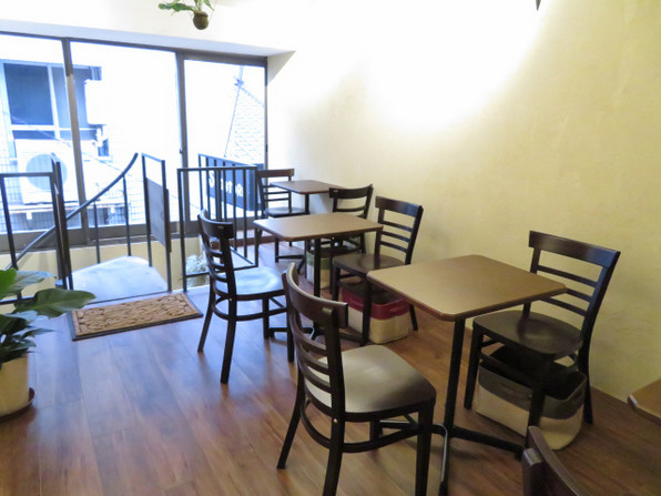 ●たまたま一瞬お客さまが引いた状態の時に内観撮影。2席のテーブルが4卓。この一瞬後に満席になりました。