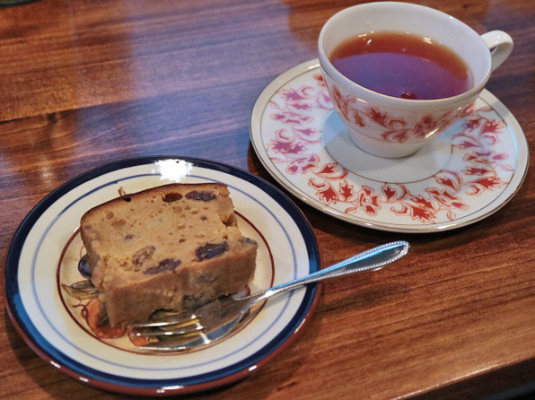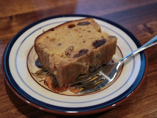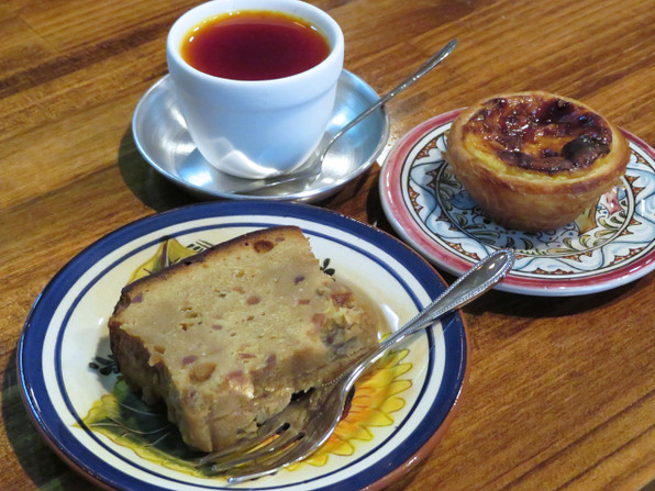 このフルーツケーキはポルトガルのアソーレス諸島のお菓子だそうで、ボーロ・アソリアーノ450円。ラム酒とポルトに漬け込んだレーズンとオレンジピール入りで、甘みはきび蜜とのこと。