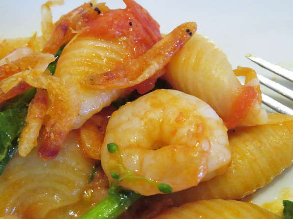 ●ここでイタリアンテイストが登場、コンキリエです。ソースがよくからんで旨っ。菜の花、小海老、桜海老。