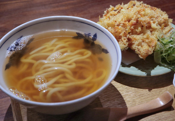 ではずっと食べたかったかき揚げうどんをいただきましょう~♪
