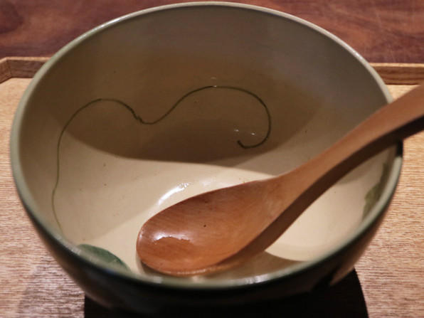 ●若竹のお椀・うどん入りという感じで、これ完全にお料理です。お値段は2000円ですが、その価値は十分過ぎるほどあります。見えている筍の下に、まだ筍がひそんでいるのです。筍は甘くて柔らかくて、けれど必要な噛みごたえがあって心地よく、理想的でした。