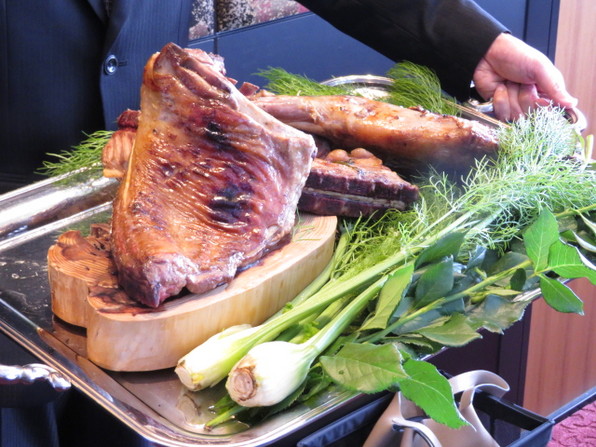 ●仔羊の炭火焼がプレゼンされました。これから切り分けてお皿に盛られます。