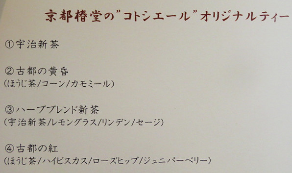 ●「椿堂」さんとコラボをしたコースで、食後にもちろん紅茶の他、以下のようなブレンドティーを楽しんだのでした。
