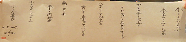 ●ほそながーいおまかせメニューも見せていただき、季節が巡って前回と変わっていることを確認しました。