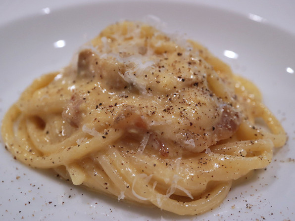 ●カルボナーラ、太め乾麺で