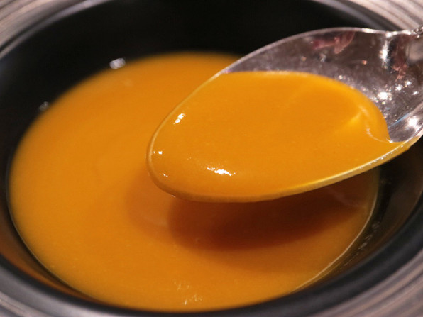 ●チョコラータのプリンに合わせて供されるはずだったマンゴーソースを、お願いして別添えで。