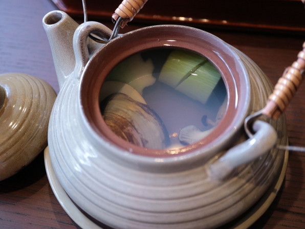 ●はまぐりのだしが土瓶仕立てて添えられ、最後はこれでお茶漬けにしてご飯をいただいたらもう天国です。