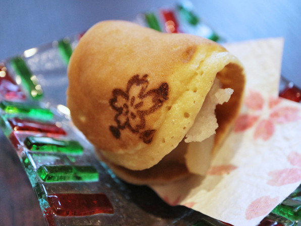 ●白いんげんのこしあんのどら焼き、中にいちご入りです。