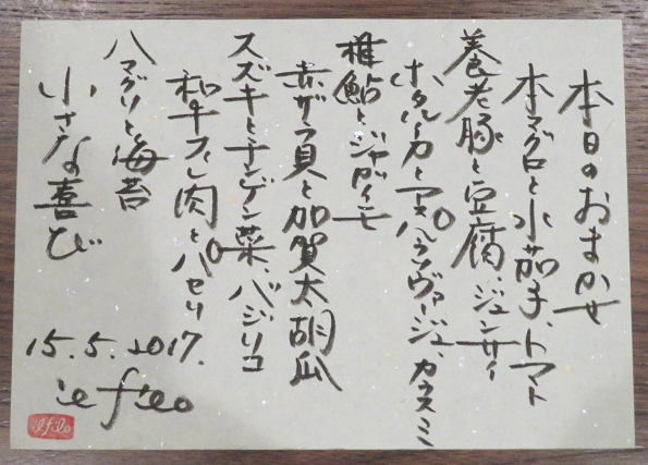 ●こんなメニュー。以下コース写真です。