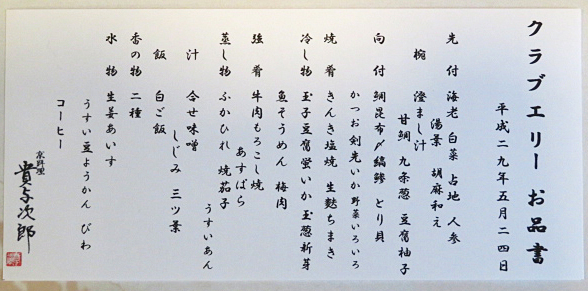 5月24日(水)、クラブエリー和食会をいたしました。今回お世話になったのは油小路三条上ルの「貴与次郎」さん。