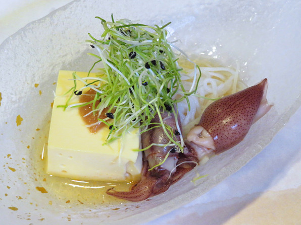 ●冷やし物 玉子豆腐、ほたるいか、玉ねぎ新芽、魚そうめん、梅肉