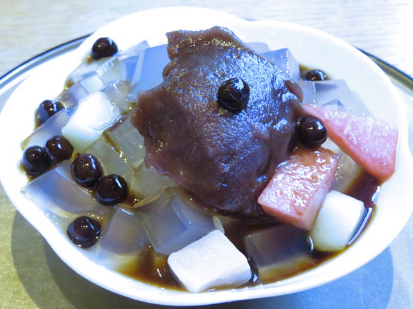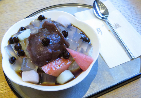 ●寒天の柔らかさにこしあんのなめらかさ、赤えんどう豆の少し硬めの食感、黒蜜のとろみと全てが完璧なバランスだと思います。京都甘味の天国のひとつです☆☆☆