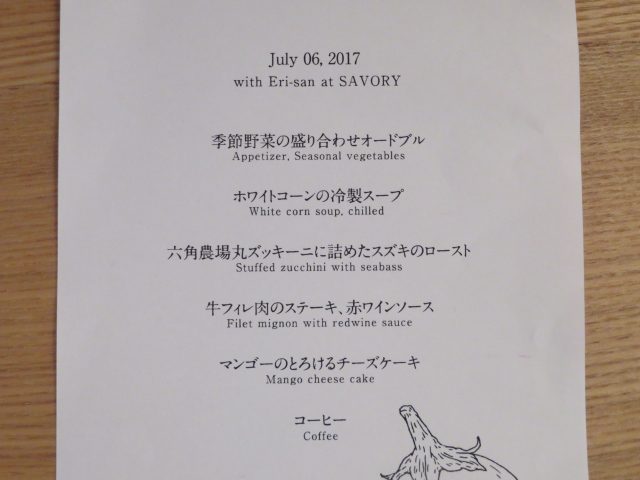 いつもとまた違う雰囲気、違う気分で楽しめたお昼、「SAVORY セイボリー」さん、サーヴィスの田村英志さんに御礼申し上げます。