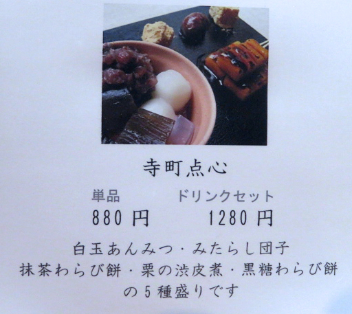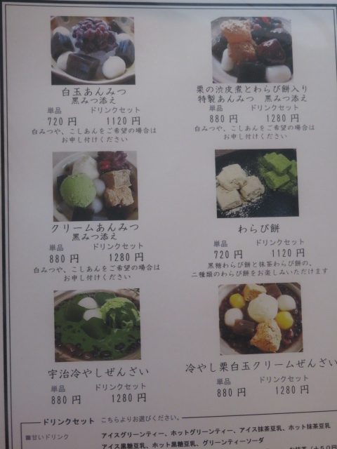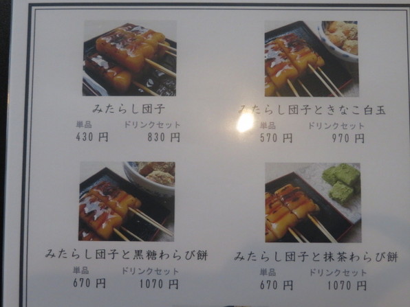 まずは伝統のみたらしだんご(河原町店から運んでいる、たれは昭和の時代から続いているもの)とあんみつなど、多彩なセットが用意されています。