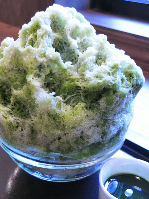 ●宇治ミルク=抹茶蜜に練乳です。氷のかき方は、蛸薬師通の「うめぞの」さんの面削り式とは少し違って、河原町本店式。でもこれも口あたりふんわり優しくておいし(^o^)(^o^)☆☆☆