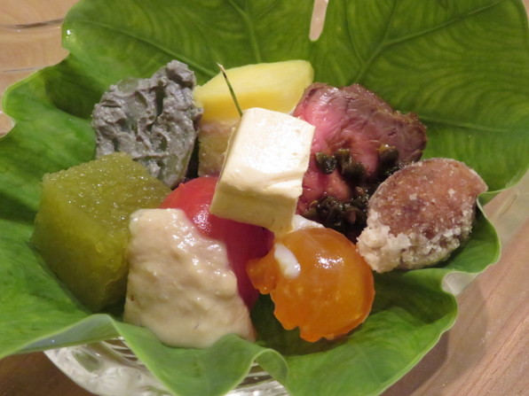 甘味の、アイスクリームとコンフィチュール入り大福を召し上がれない方のためには目の前で葛きりを作ってくださって、まー本当に手間をいとわず作業の早いこと(*_*)(*_*)