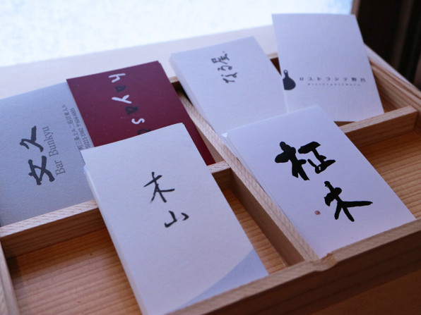 ●ショップカードコーナーに、かつて一緒にジェイアール京都伊勢丹の「京都和久傳」で働かれ今は独立された木山さんや、仲良しのろっち=「リストランテ 野呂」のカードもありますねー! 皆さん立派にお店を構えられて、偉いです、頼もしいです。