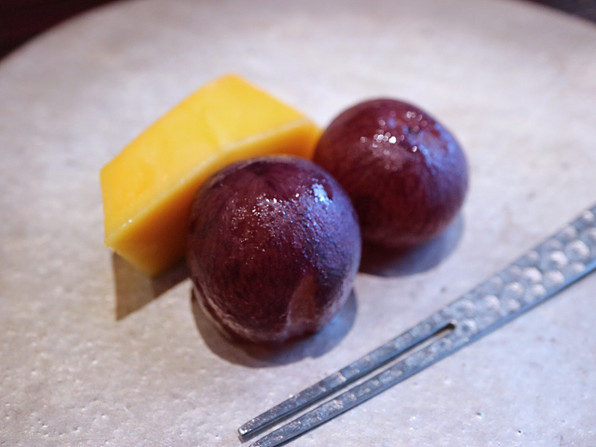 ●食後の甘味に、フルーツとわらび餅。