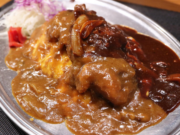 ●少し前、ちょうどお昼に(お昼のみ禁煙だから)ふと「そうだキッチンゴンさん行ってみよう♪」とカウンターでいただいたピネライス。カレーソースかドミグラスソースか選ぶのですが、ハーフ&ハーフというのがあり、さらに、たまごをあしらったオムピネというのもある。オプションを払ってオムピネのハーフ&ハーフをしてもらいました。