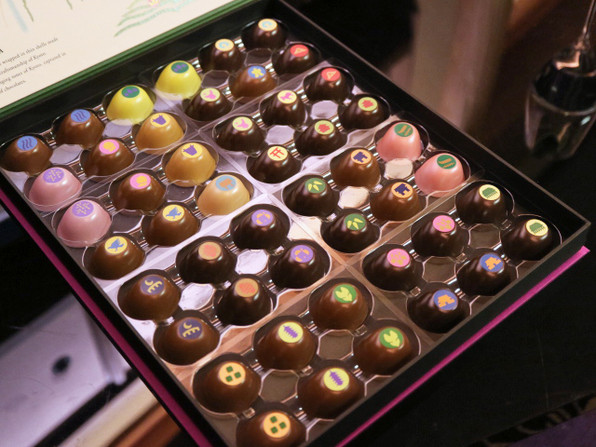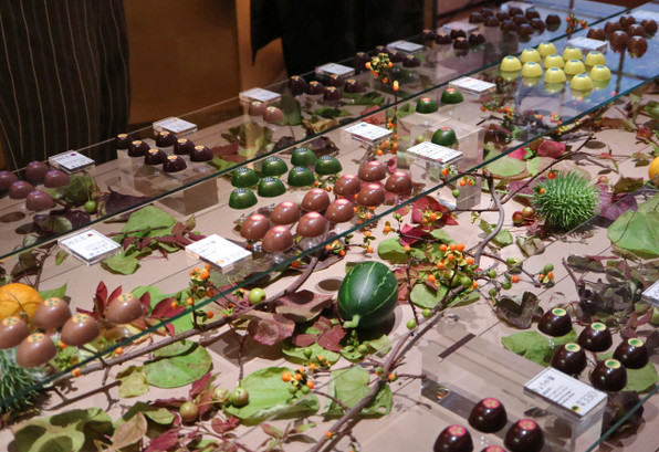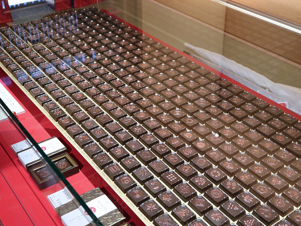 ■ 新しくなった1階のフロアでは、ずらりと365日の紋のショコラが並んで壮観、そして新しく全30種類取り揃えて新発売なった「きょうの宙(そら)」がすごいです。