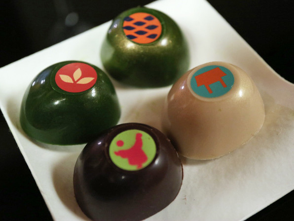 1個また1個と試食させていただくごとにメロメロになりました。トンカ豆、山椒、モンブラン、きなこなどなど、ショコラとそれに合わされた素材が風味明確、香りが非常に強く味わい濃厚なのです。