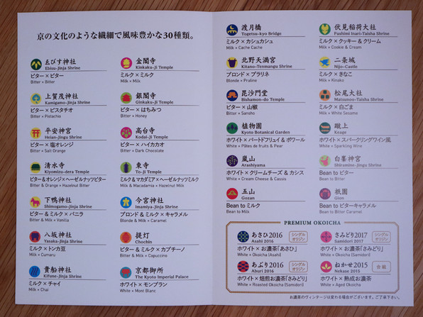 新しくなった「きょうの宙」シリーズは、今まで7個セットなどで売られていた既存のものも入っていますが、今回から1個売りされるようになりました。金閣寺、蹴上、祇園など京都の名所名が冠され、季節限定ものもあり、京都の気分にひたりつつ、さまざまな素材と組み合わされたショコラを楽しむことができるようになっています。