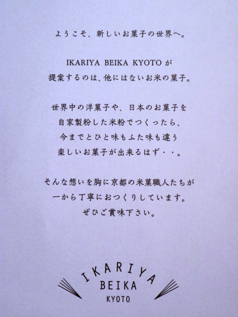 高倉通三条下ルに8月10日オープンした「イカリヤ米菓京都」、ビストロの「イカリヤ」さんが出された米粉のお菓子専門店です。